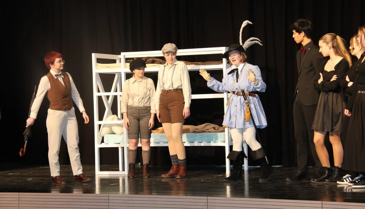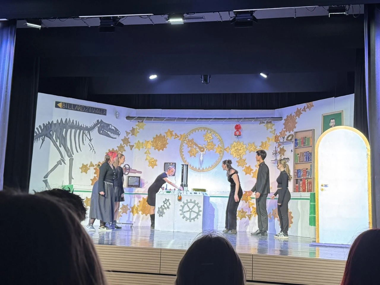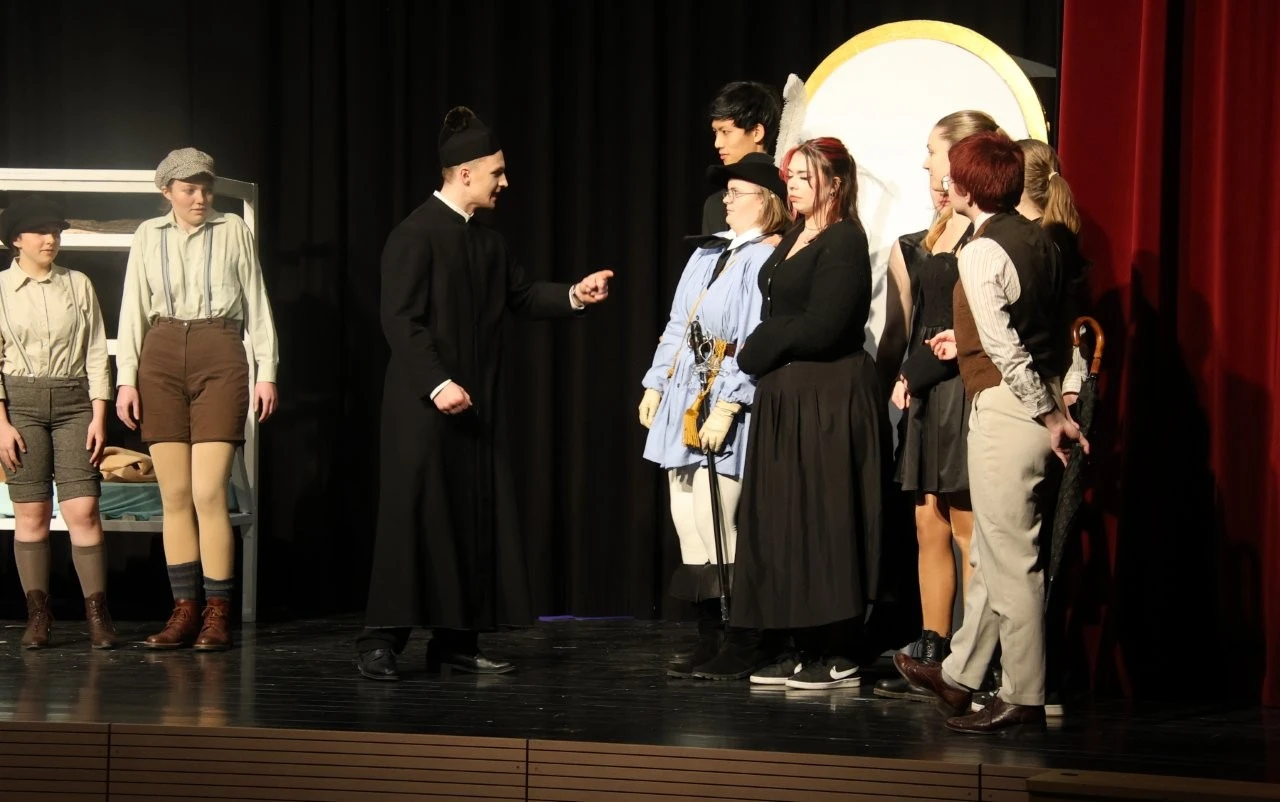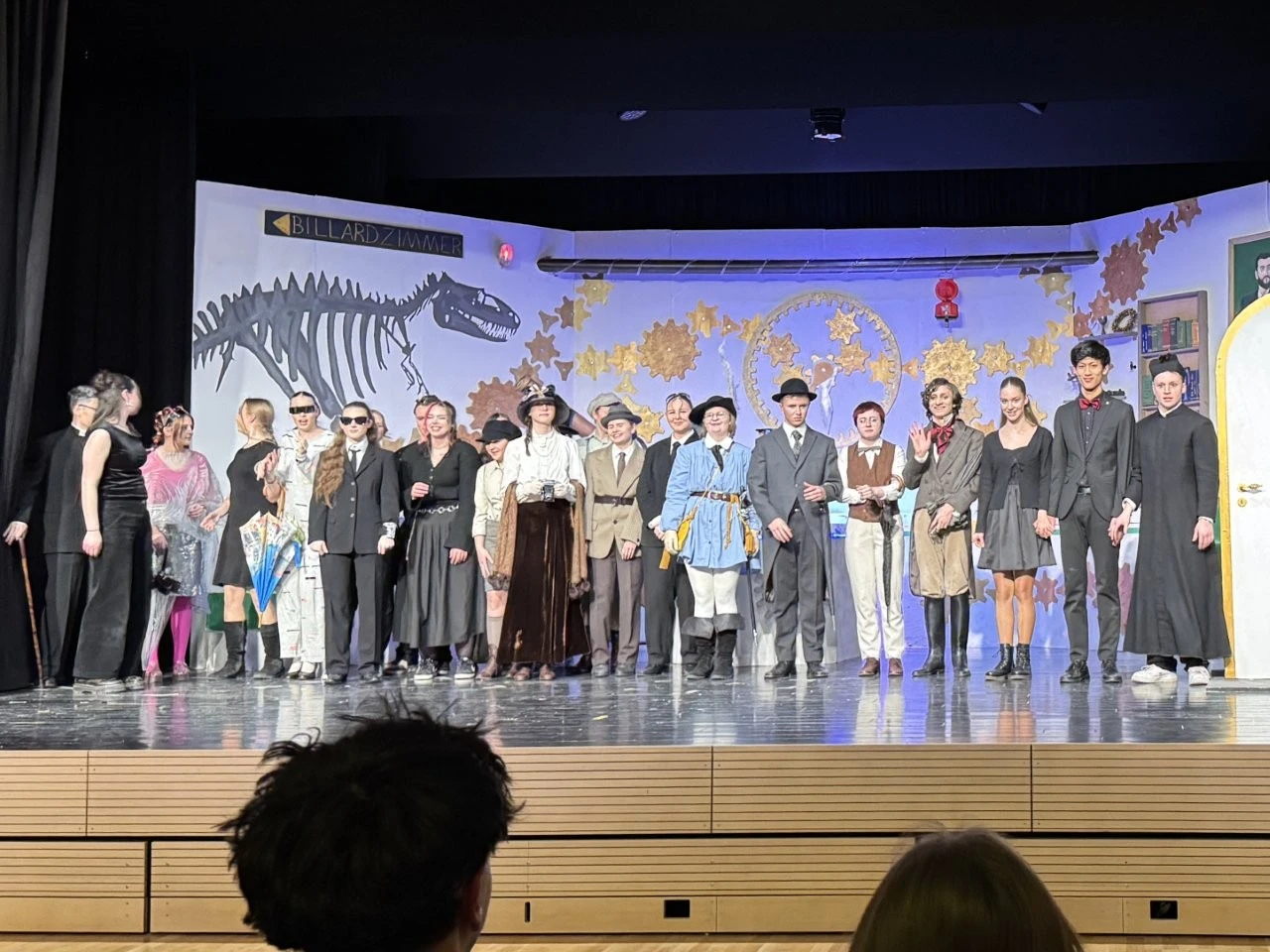 Eine Zeitmaschine beamte Lenderschüler in das Jahr 2120 und sie erleben, wie Schülern nach einem ChatGPT-Aufstand die Holobrillen wieder abgenommen werden, Lehrer im Unterricht zum gedruckten Buch zurückkehren und die KI- Schulleitung nach der Rückkehr aus der Zukunft wieder mit einer echten Person besetzt wurde. Dies alles erlebten die Zeitreisenden bei 3 ausverkauften Aufführungen in der Aula, die ganz im Zeichen des 150. Jubiläums der Schule von Franz Xaver Lender standen, die lange Reihe der glänzenden Theater-Projekte fortsetzte und darüber hinaus als Sahnehäubchen die Gäste mit einem köstlichen Drei-Gänge-Menü von Chefkoch Christoph Furtwängler und dessen Lender-Küchenteam verwöhnte. Das war Kulinarik vom Feinsten, die der Küchenchef aus Töpfen und Pfannen zauberte. Dafür gab es als „Nachspeise“ viele kulinarische Komplimente sowie stehende Ovationen für die Akteure der Theater-AG der Mittel- und Oberstufen rund um die Regisseure Adrian Keller, Thomas Dresel und Laura Fischer.