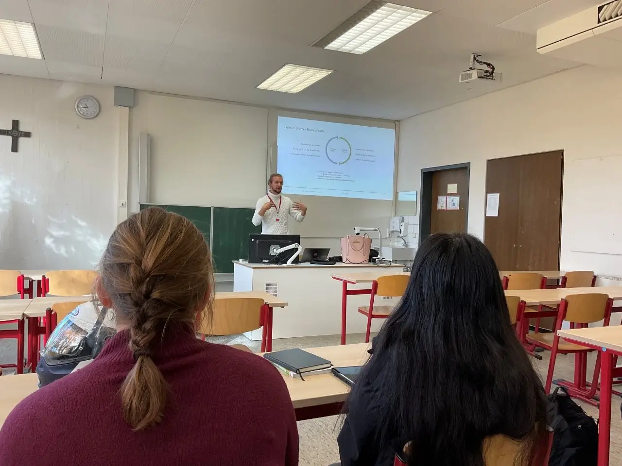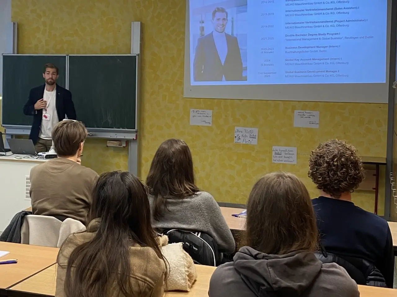 Die Veranstaltung startete zunächst mit einer Einführung durch die Tutor:innen, die mit den Schüler:innen informative Magazine und Nachschlagewerke der Berufs- und Studienorientierung des Landes Baden-Württemberg besprachen. Darauf folgte das Herzstück des Tages: Die beiden einstündigen Vortragsblöcke der Lender-Absolvent:innen, die hier als Referent:innen in 26 Klassenräumen den aktuellen 368 Oberstufen-Schüler:innen über ihre Studiengänge und Berufsfelder berichteten und Rede und Antwort standen.