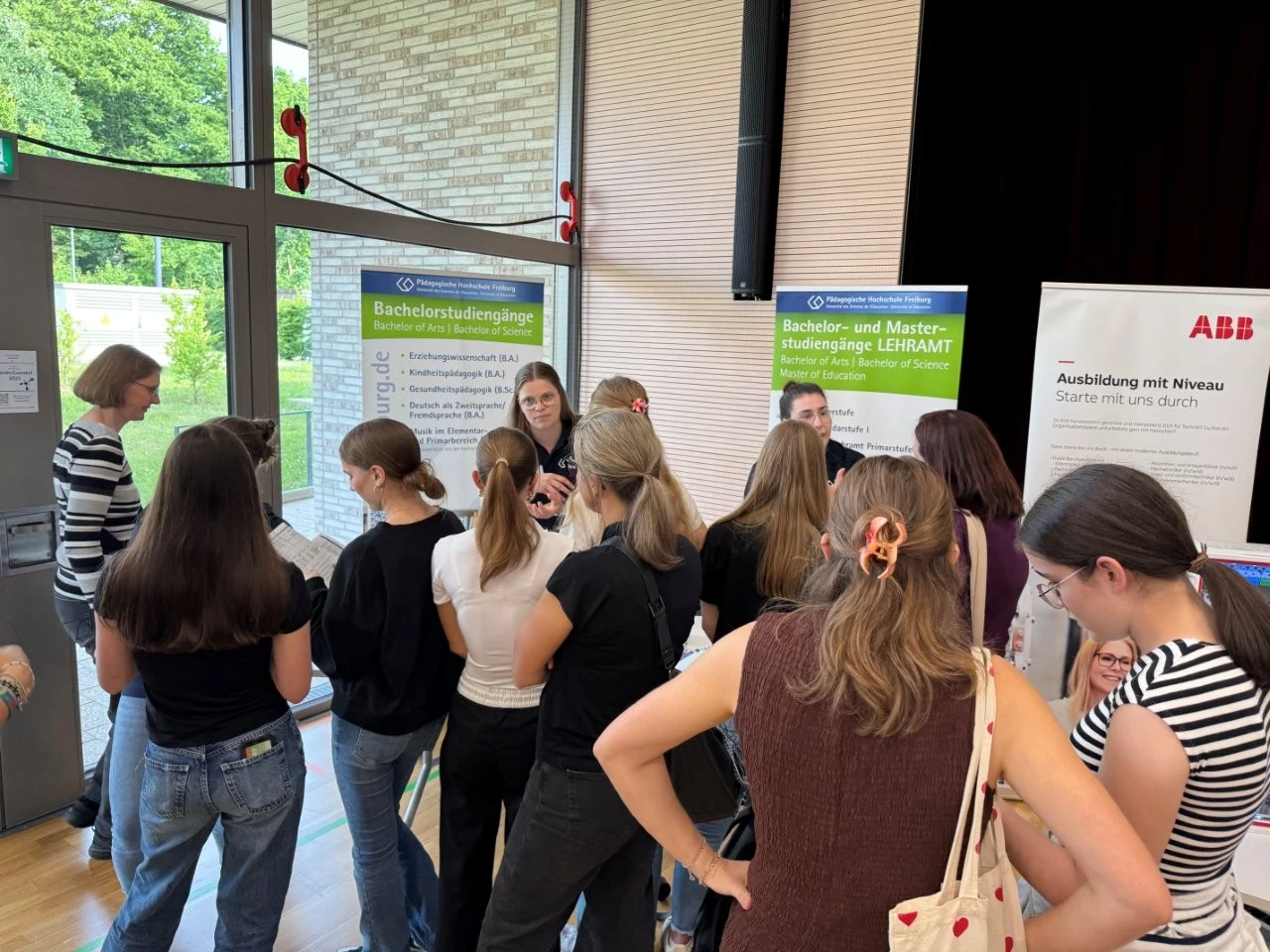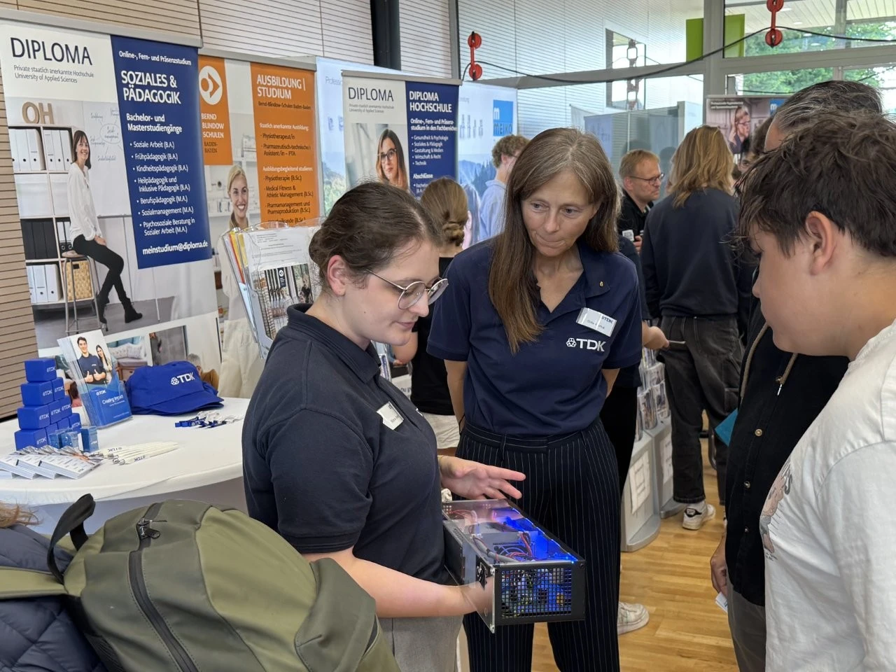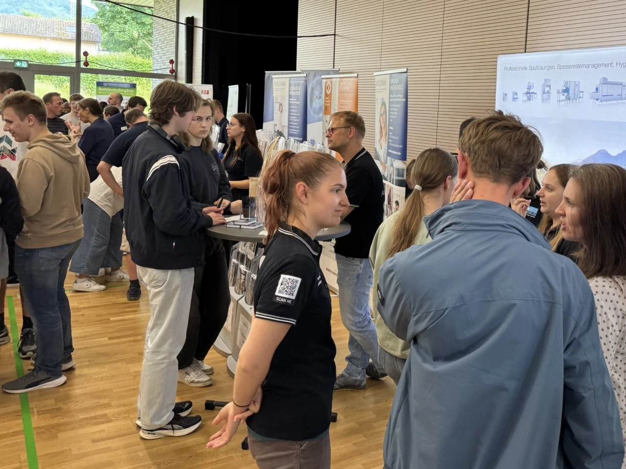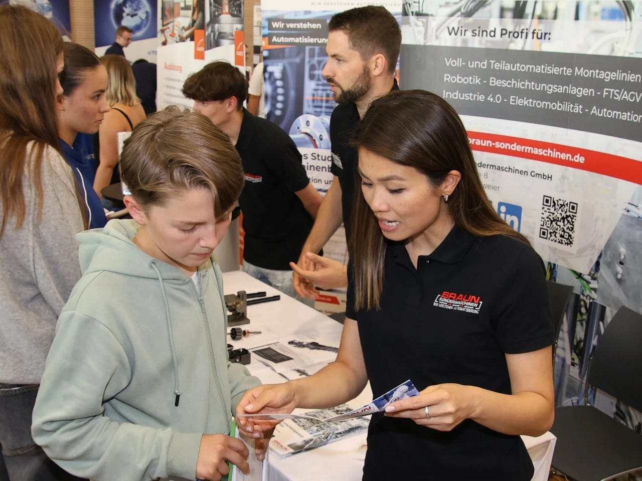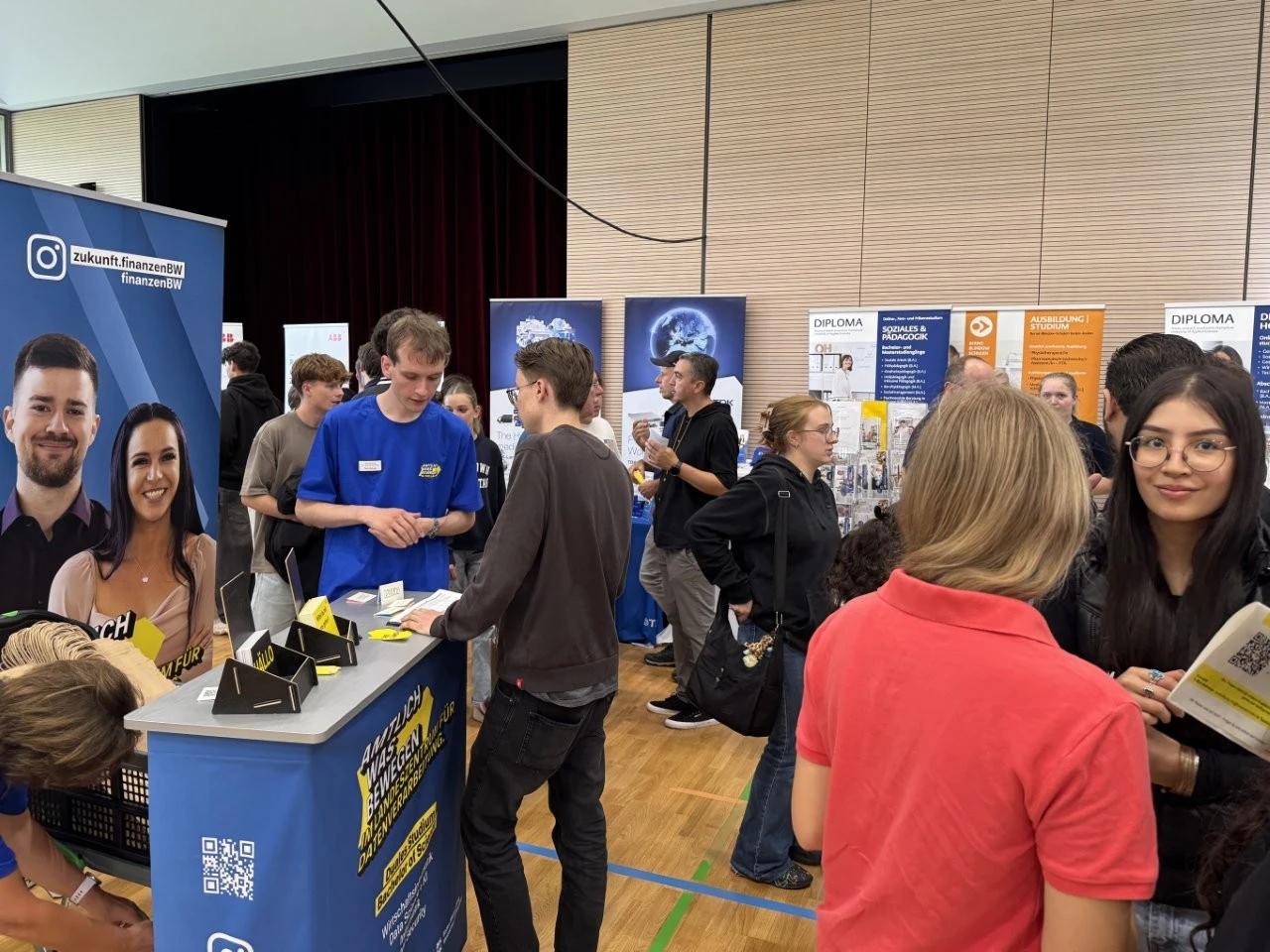 „Es gibt kein zu früh bei der beruflichen Orientierung“, meinte der Ausbildungsleiter vom Landratsamt, Bastian Oswald, als er mit Mia Hähnel besondere auch über das Duale Studium „Sozial Arbeit“ sprach. Die Schülerin hat zwar noch etwas Zeit bis zum Abitur, doch für sie war es wichtig, sich frühzeitig mit dem Thema Beruf und Studium auseinanderzusetzen. Dass bei der LenderConnect auch Berufe vorgestellt wurden, die wie der Beruf des Heilerziehungspflegers eher unbekannt sind, war am Stand der Diakonie Kork zu sehen. „Wir arbeiten mit Menschen mit Behinderung“, meinte Denis Arnold, der die Präsenz bei solchen Berufs- und Studienmessen als sehr wichtig ansah.
