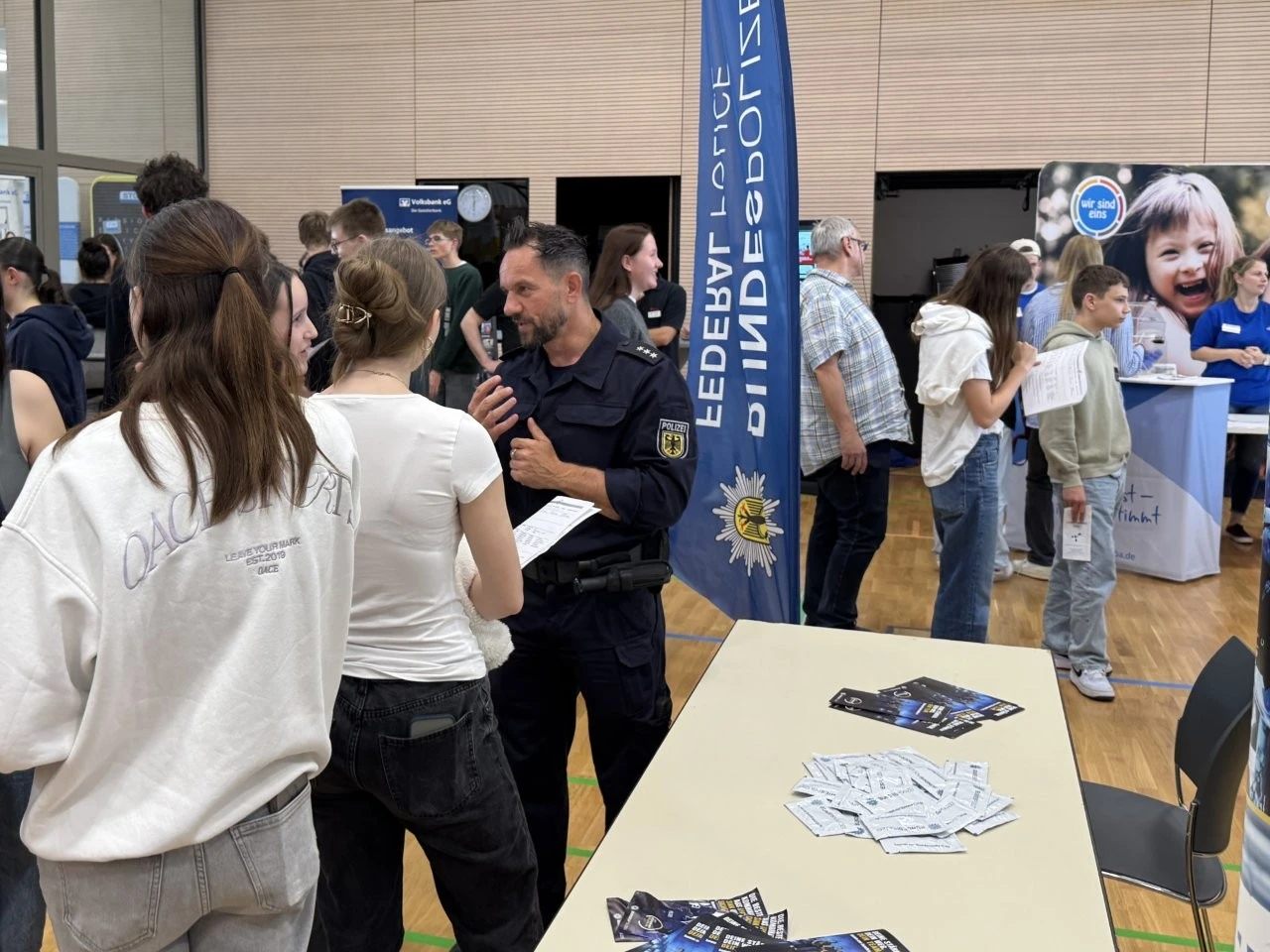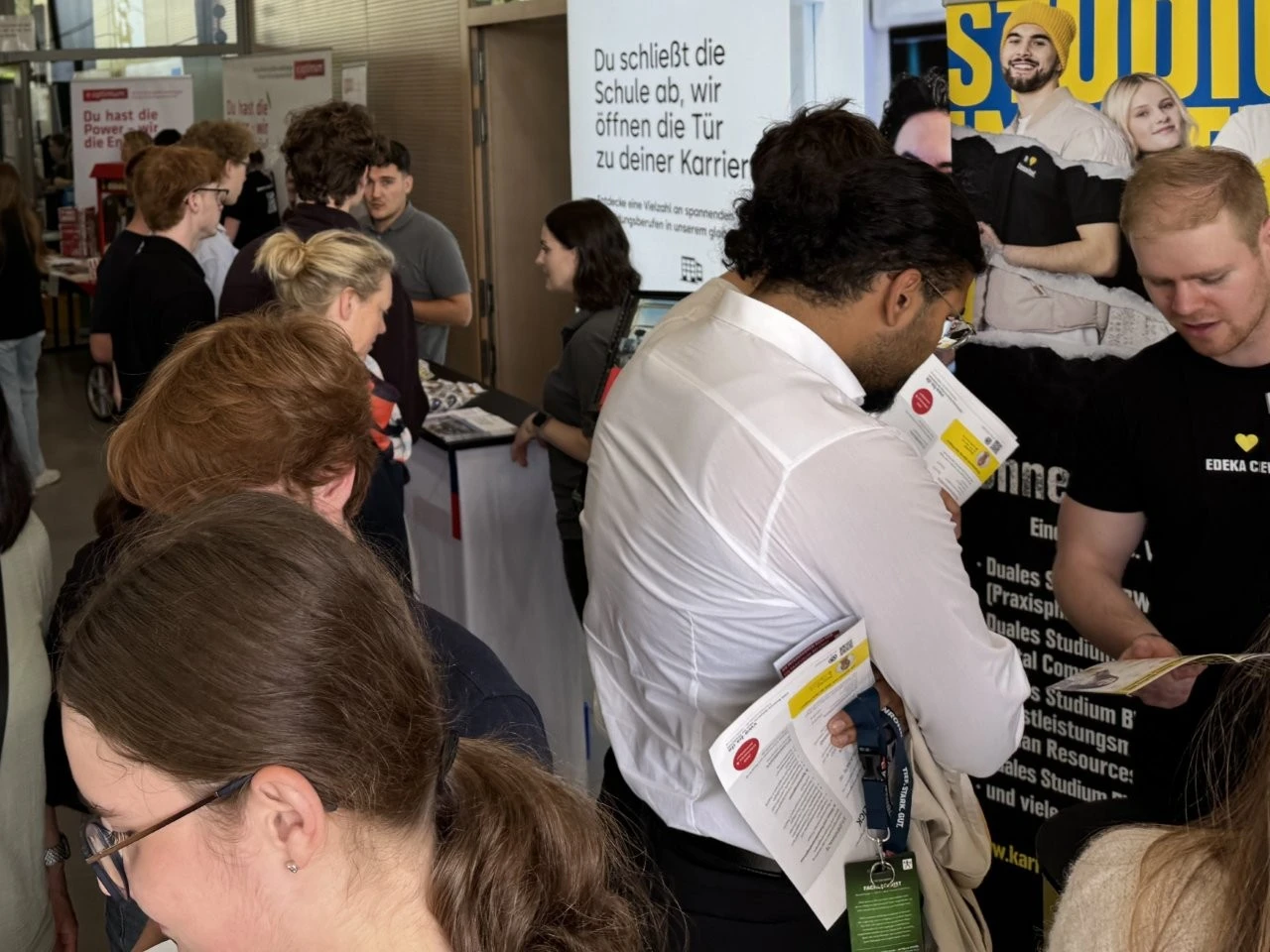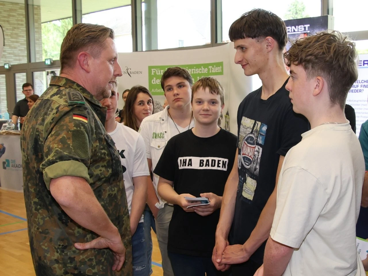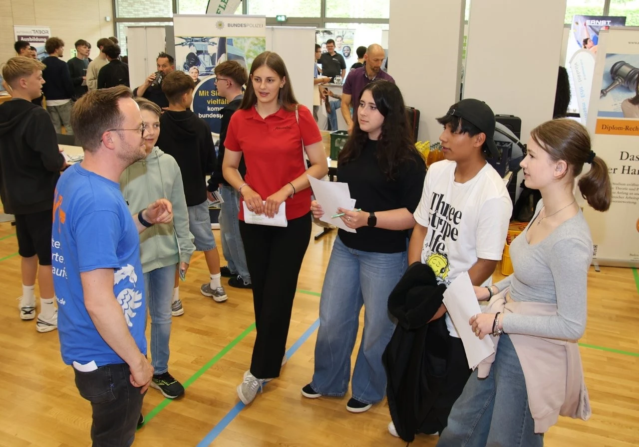 Die Werbeslogans der Aussteller bei der Berufs- und Studienmesse „LenderConnect“ übertrafen sich gegenseitig: „Du hast die Power, wir haben die Energie“, „Amtlich was bewegen in the Länd“, „Mach was wirklich zählt! Geh zur Bundeswehr“. Ob diese und andere originelle Slogans wie „Für jedes tierische Talent den richtigen Job“ tatsächlich die jugendliche Zielgruppe der künftigen Berufs- und Studienanfänger trafen, ließ sich nur vermuten und vielleicht an den „Schülertrauben“ an verschiedenen Infoständen ablesen. „Wir verzeichnen aktuell ein zunehmendes Interesse von Jugendlichen an der Bundesweher“, meinte Stabsfeldwebel Daniel Kupfer, dessen Stand permanent von interessierten Mädchen und Jungen umringt war. „Die Bundeswehr bietet eben auch attraktive Ausbildungen und Studiengänge“, so Kupfer.