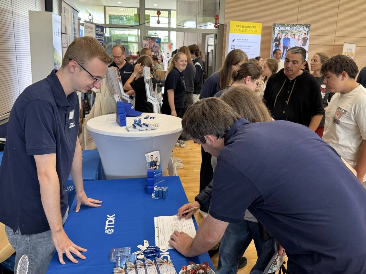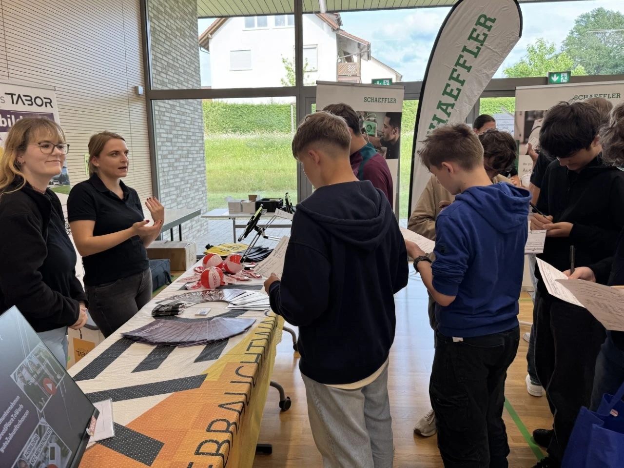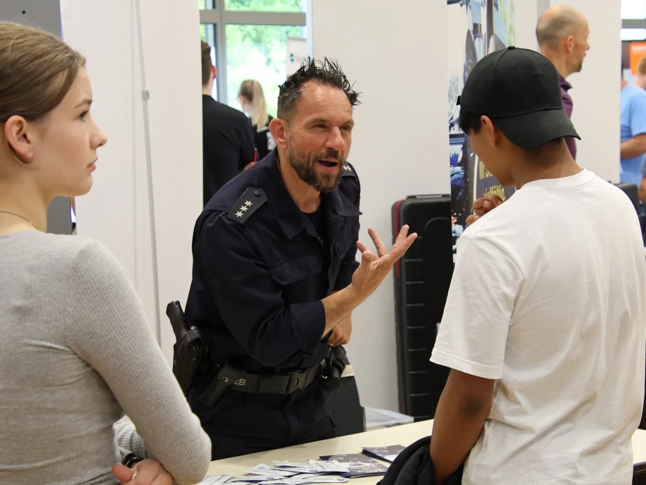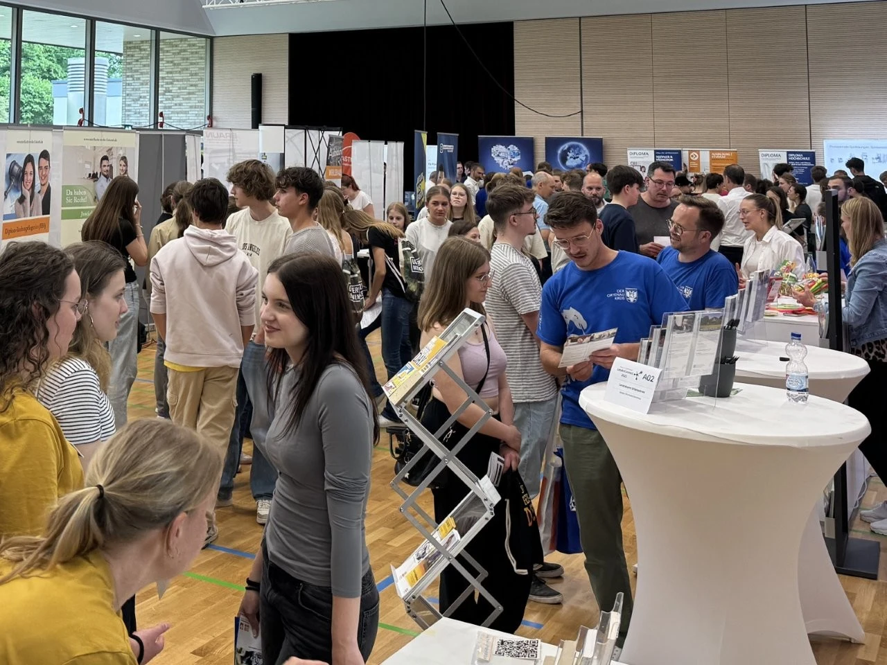 Die Werbeslogans der Aussteller bei der Berufs- und Studienmesse „LenderConnect“ übertrafen sich gegenseitig: „Du hast die Power, wir haben die Energie“, „Amtlich was bewegen in the Länd“, „Mach was wirklich zählt! Geh zur Bundeswehr“. Ob diese und andere originelle Slogans wie „Für jedes tierische Talent den richtigen Job“ tatsächlich die jugendliche Zielgruppe der künftigen Berufs- und Studienanfänger trafen, ließ sich nur vermuten und vielleicht an den „Schülertrauben“ an verschiedenen Infoständen ablesen. „Wir verzeichnen aktuell ein zunehmendes Interesse von Jugendlichen an der Bundesweher“, meinte Stabsfeldwebel Daniel Kupfer, dessen Stand permanent von interessierten Mädchen und Jungen umringt war. „Die Bundeswehr bietet eben auch attraktive Ausbildungen und Studiengänge“, so Kupfer.