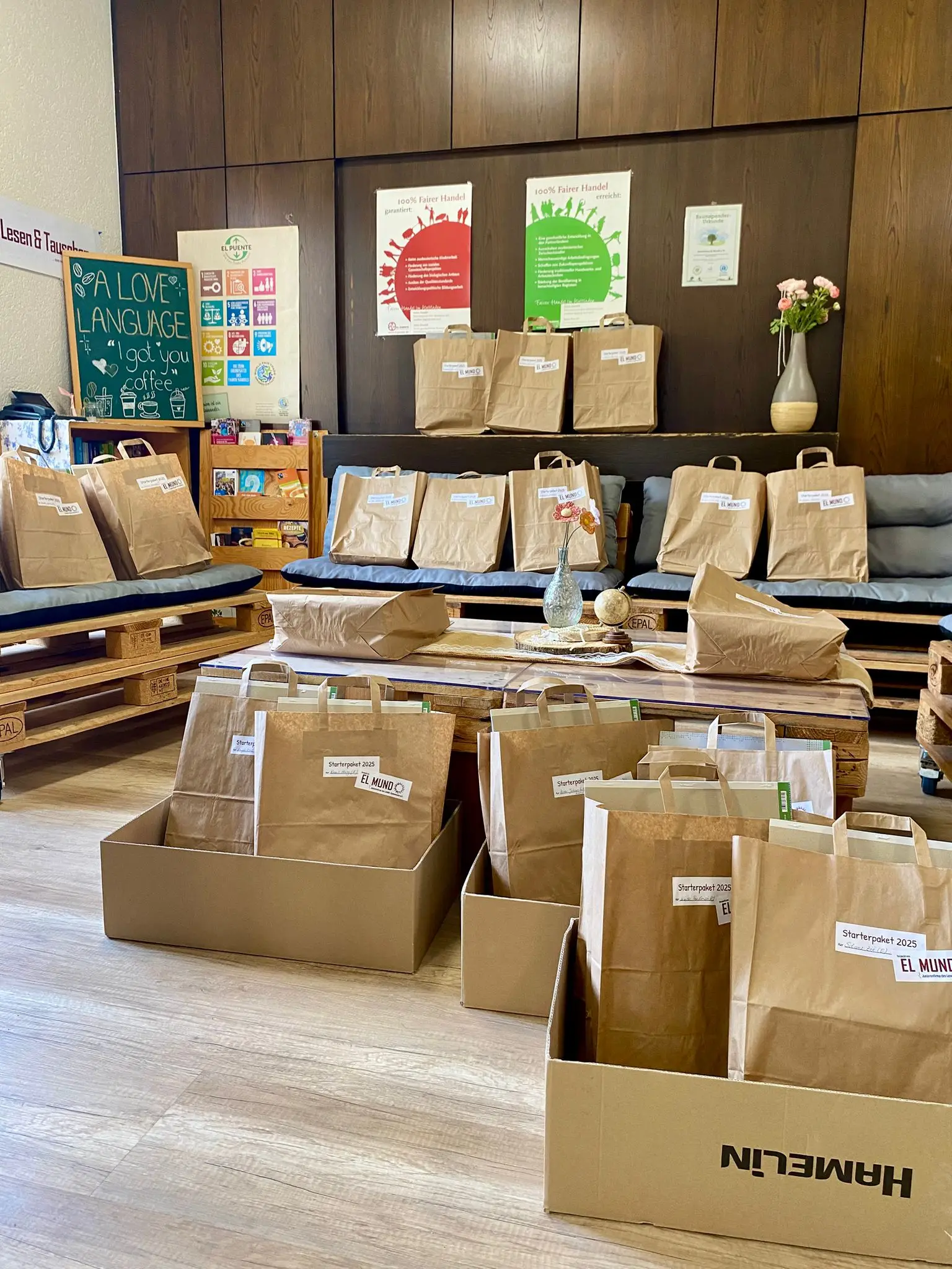 Als die Eltern am ersten Schultag im El Mundo-Laden vorbeikamen, um die Tüten für ihre Kinder abzuholen, lernten sie auch gleich uns und El Mundo kennen. Die Eltern waren froh, Hefte, Ringbücher & Co. nicht mühsam einkaufen zu müssen und wir sind stolz auf unser Angebot – denn mit den Materialpaketen fördern wir soziale Gerechtigkeit und Nachhaltigkeit an unserer Schule! Danke fürs Mitmachen!
