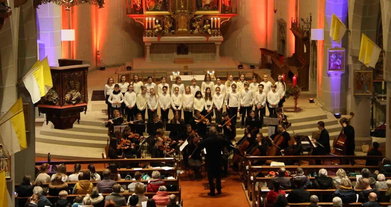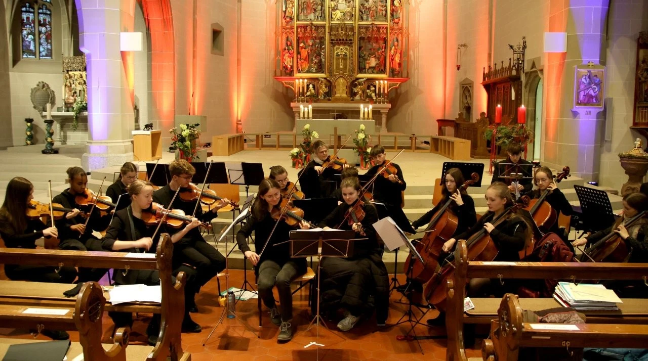 Das musikalische Sahnehäubchen des Festtages mit dem Freiburger Weihbischof Christian Würtz präsentierte am Abend die Heimschule Lender, die mit zwei Chören und einem Streichorchester nach Kappelrodeck kam und ein glänzendes Konzert darbot. Dabei war es sehr schön, wie die Lenderschüler mit Musik und Gesang eine adventliche Atmosphäre schufen, alt vertraute Weisen wie „O Heiland reiß die Himmel auf“ und „Es kommt ein Schiff geladen“ sangen und die Besucher zum Mitsingen einluden. So wurde der Raum der Nikolaus-Kirche zu einem wohltuenden Ort, an dem in den Liedern die uralte Sehnsucht der Menschen nach Hoffnung, Frieden und Gerechtigkeit zum Klingen kam. Dazu haben die Chöre (Unterstufenchor & Jugendchor, Leitung Christine Alshut) die Spur nach Weihnachten gelegt, als Lieder wie „Gesegnet sei die Heilige Nacht“ oder „Ich steh an deiner Krippe hier“ erfreuten und die „Weihnachtsglocken“ erklingen ließen. Einen glänzenden Part spielte das Streichorchester (Leitung Ulrich Noss), das im Januar beim Händel-Jugendpreis-Tradition der Lender fortsetzen möchte. Im „Achertäler Dom“ überzeugte die Musiker mit einem feinen, nuancierten Klangbild, als das Weihnachtskonzert für Streicher und Cembalo von Arcangelo Corelli und der 2. Satz von Johann Sebastian Bachs Violinkonzert in g-Moll (Solistin Solveig Sonntag) aufgeführt wurde. Mit viel Gefühl und wunderbarer Stimme sorgte Norah Kromer mit „Maria durch den Dornwald ging“ für eine besondere Note des Konzertes.