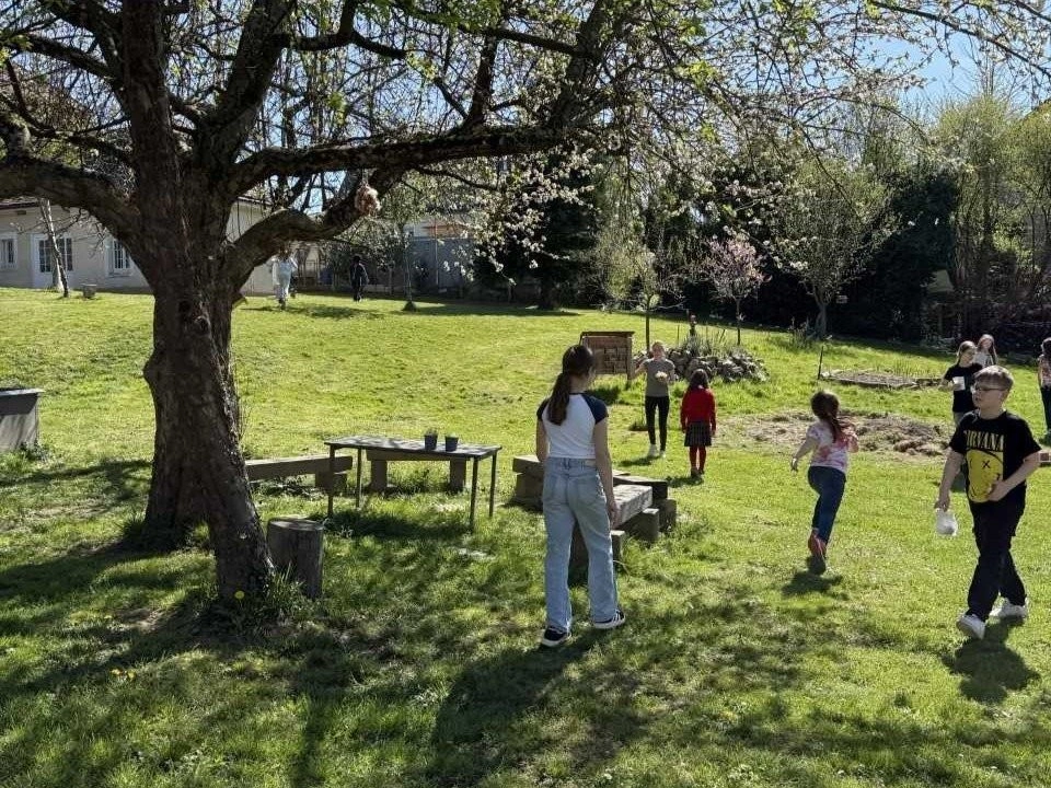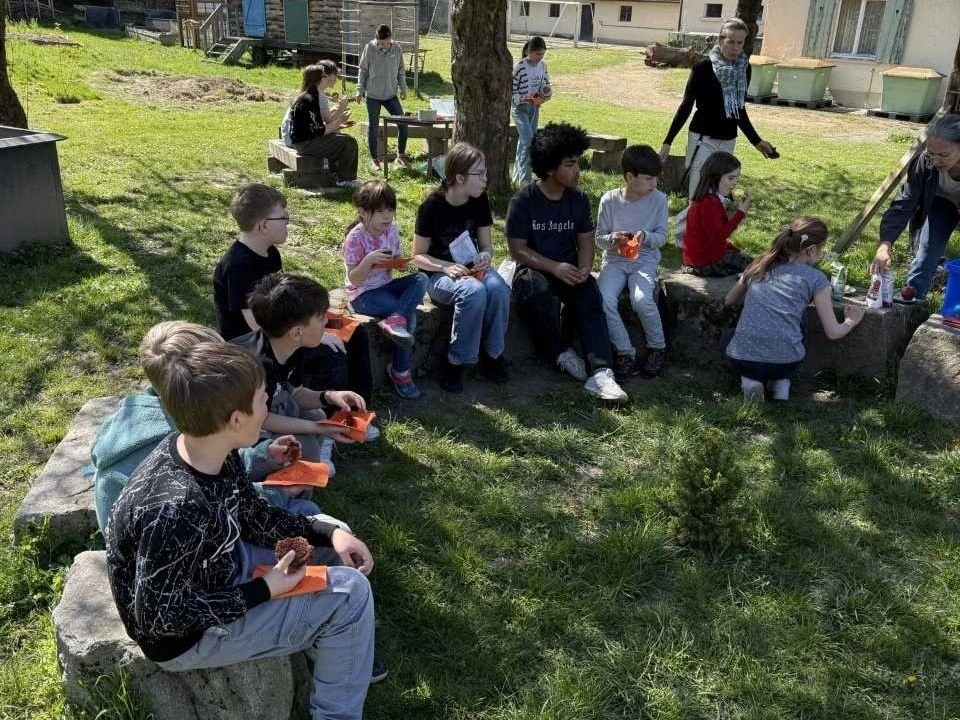 Danach ging es auf bunte Ostereiersuche in den Schulgarten. Zum Abschluss gab es ein gemütliches Picknick mit selbstgebackenem Kuchen, Äpfeln und jeder Menge guter Laune – ein perfekter Start in die Osterferien 🙂
