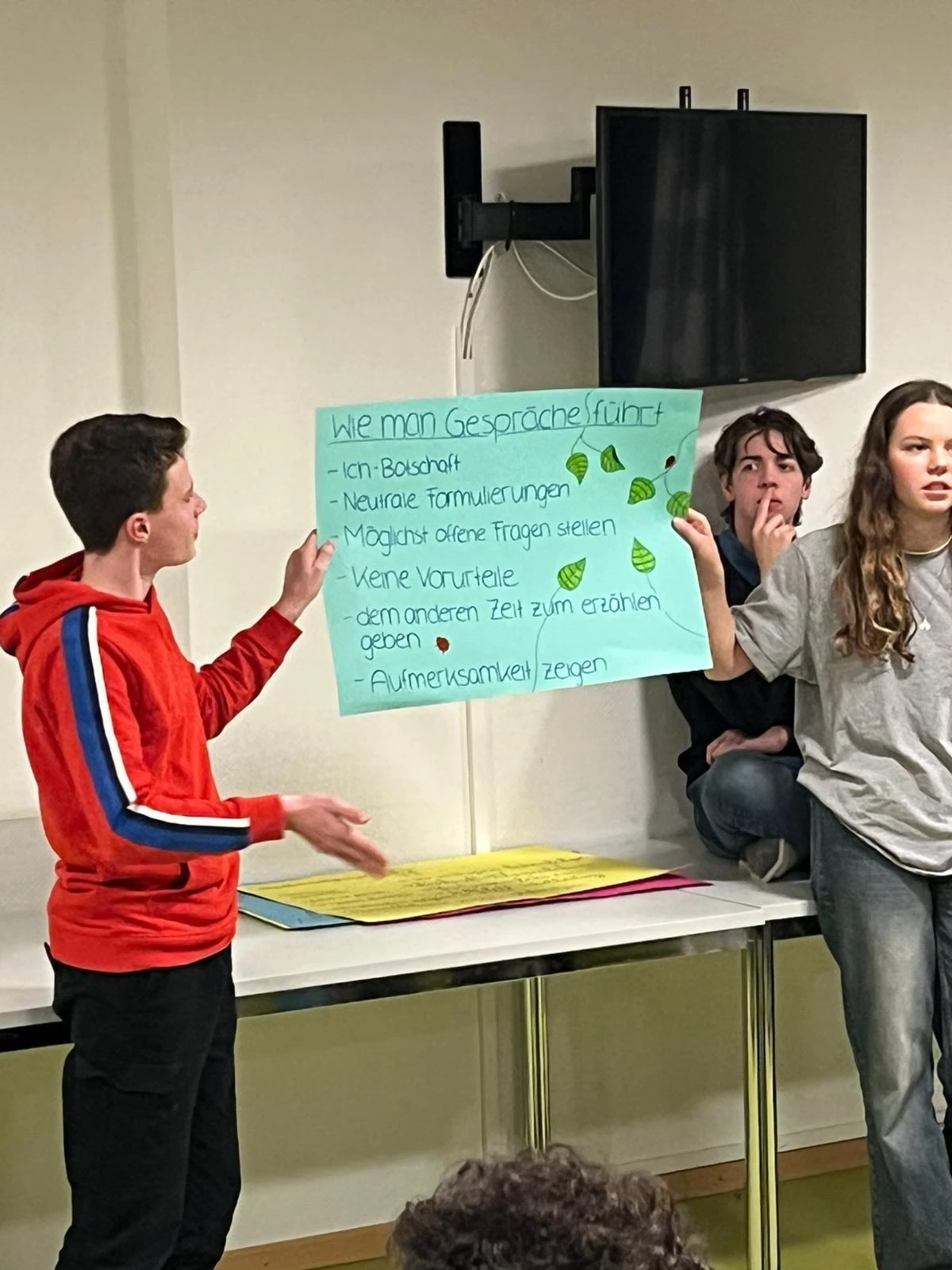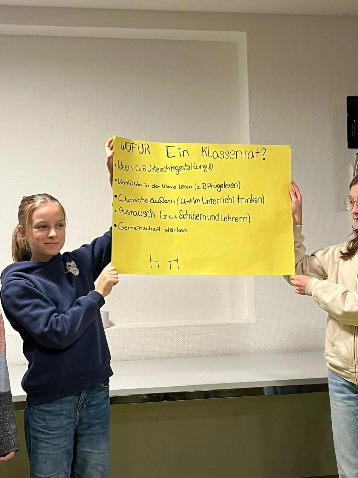 • Die Klassen 5 und 6 beschäftigten sich zusammen mit Frau Klumpp und Frau Würthner mit der Aufgabe des Klassensprechers und wie er sein Amt beispielsweise im Klassenrat richtig ausüben kann.