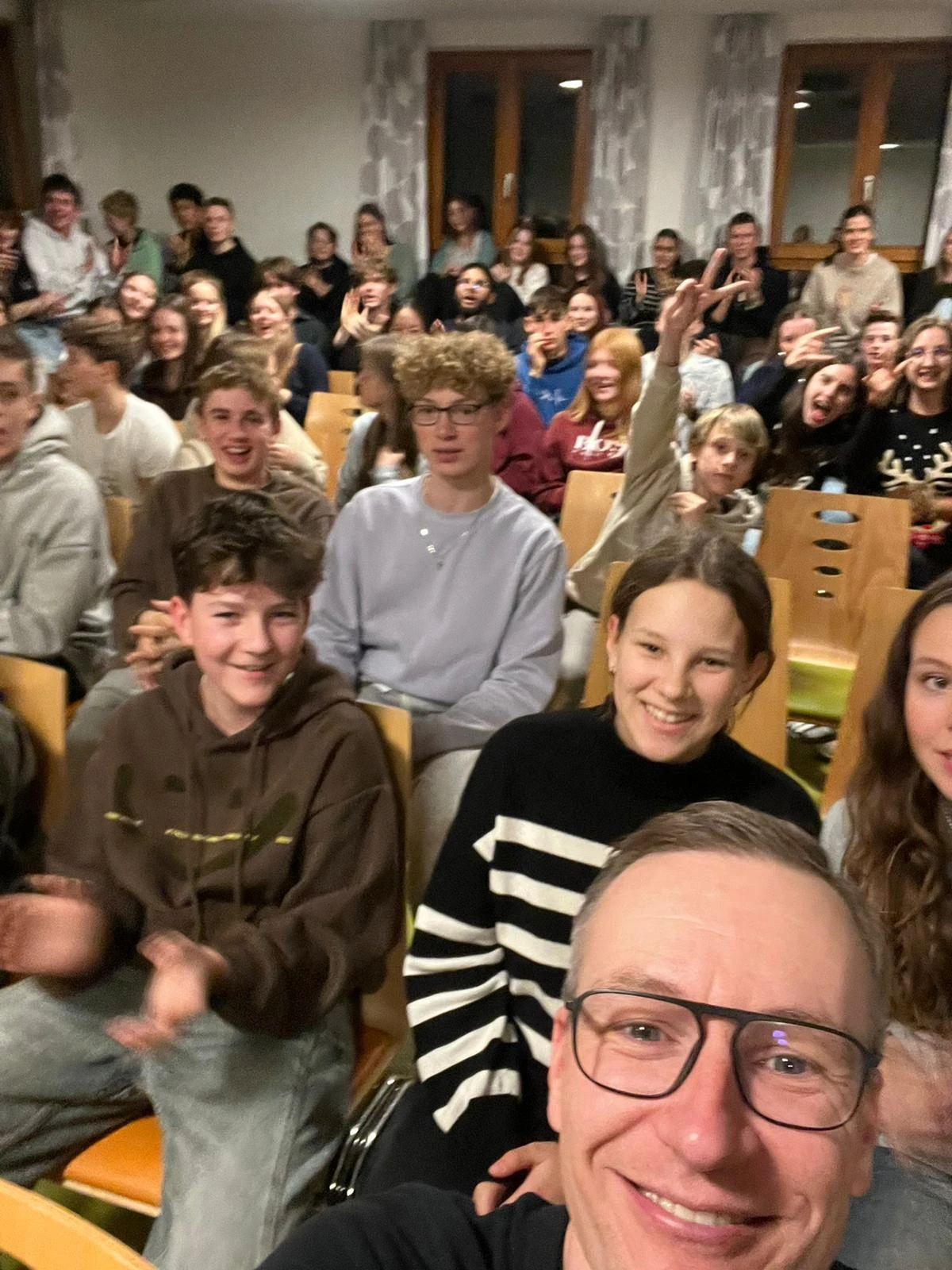 Nachdem alle Gruppen ihre Ergebnisse kurz vorgestellt hatten, gab es Abendessen. Direkt danach ging es weiter mit der Schülersprecherwahl. Herzlichen Glückwunsch an Sarah Back als neue Schülersprecherin und ihre Stellvertreter Leon Glaser und Enna Berger. Mit „Roast the SMV“, wobei alle Schülerinnen und Schüler ihre Fragen bezüglich der SMV stellen konnten, neigte sich der Abend dem Ende zu.