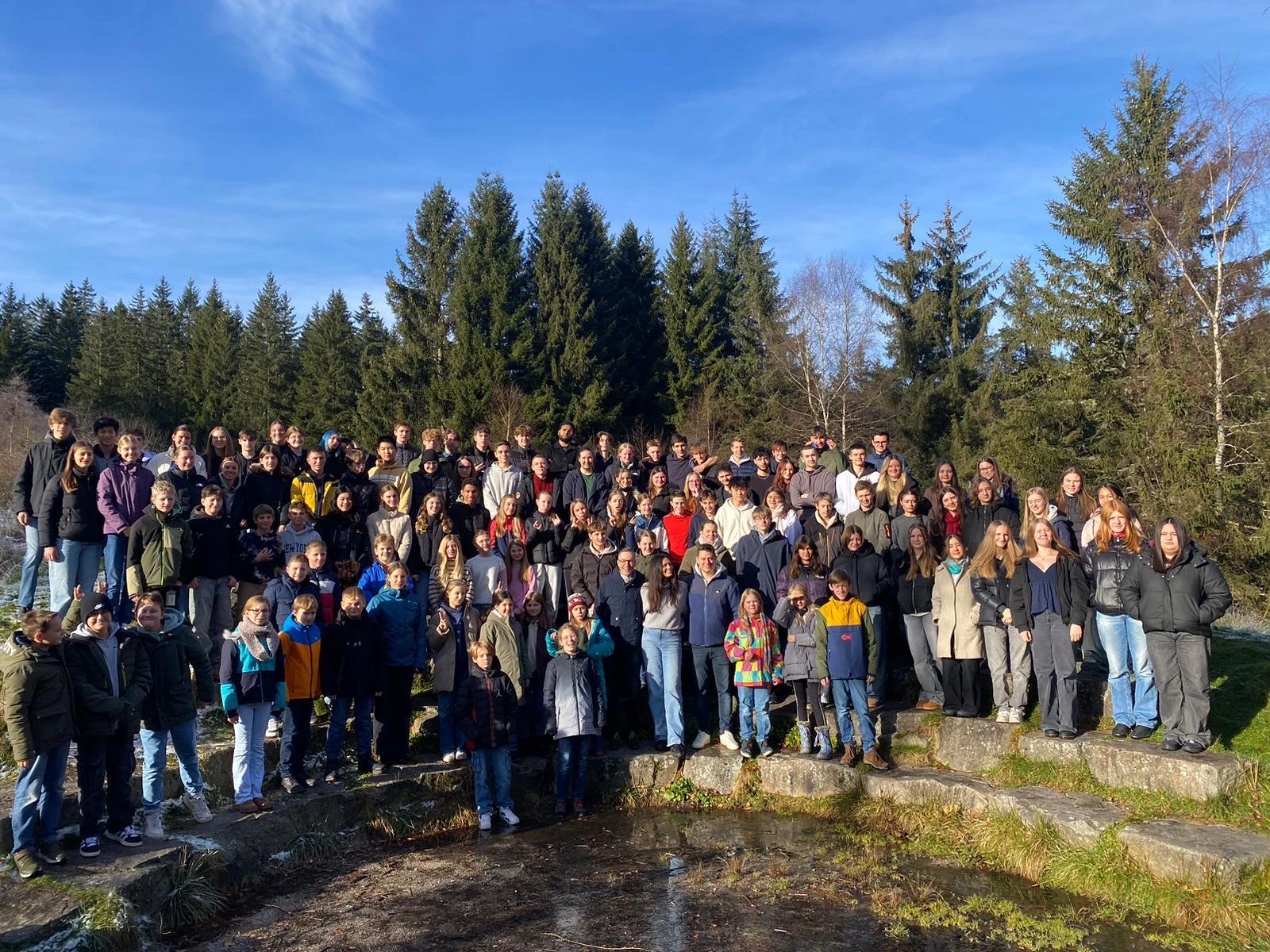 Am Donnerstag und Freitag, den 05. und 06. Dezember, fand die jährliche SMV-Tagung auf Herrenwies statt. Alle Klassen- und KurssprecherInnen der Schule wurden hierzu eingeladen. Am Donnerstag um 8:15 Uhr fuhren die beiden Busse mit über 100 Schülerinnen und Schülern, der SMV und den Verbindungslehrern in den Schwarzwald nach Herrenwies. Angekommen bei leichten Minusgraden packten alle aus und die SMV stellte kurz das Programm für die zwei Tage vor. Dann ging es nach draußen und das Gruppenfoto wurde gemacht. Anschließend ging es schnell wieder ins Warme, wo sich die SchülerInnen ihre Zeit mit Tischtennis spielen, Unterhaltungen oder auch einem Spaziergang vertreiben konnten.