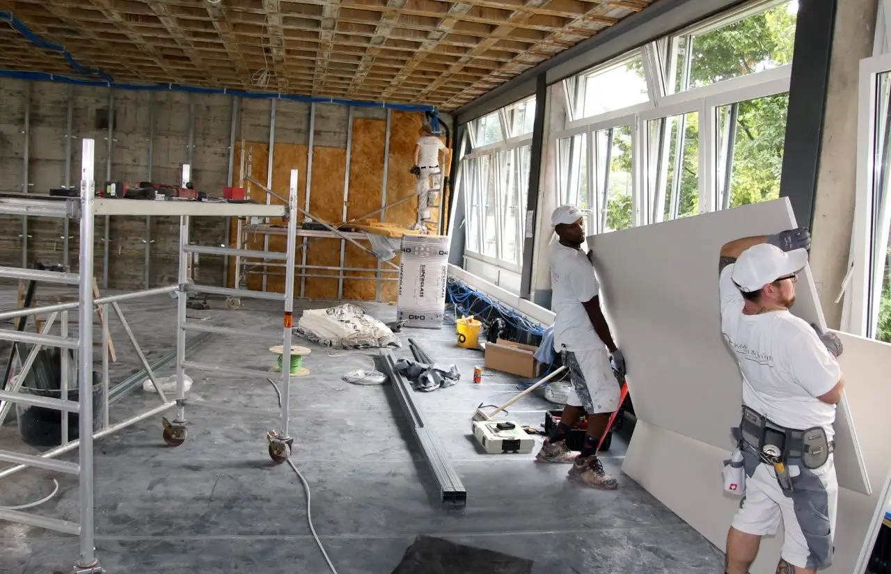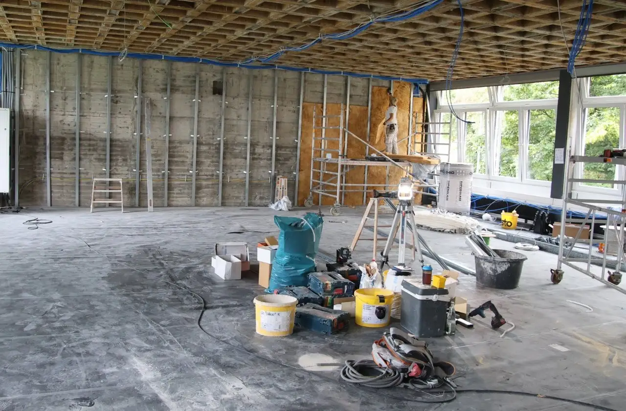 Fleißig gearbeitet wird derzeit im künftigen Informatikraum (110.000 Euro), hier wird vom Boden über die Wände, Decke und Elektrik bis zur Ausstattung alles erneuert. „Der Fachraum wird so eingerichtet, dass er flexibel genutzt werden kann“, betonte Feigenbutz. Dies bedeute, dass es an der Südseite keine fest installierten Rechner mehr gebe, hier werde sich die technische Infrastruktur für das Arbeiten mit Laptops und Tablets befinden. Im Unterricht würden die Schüler an Tischen und nicht mehr in einem Stufensaal sitzen, so dass sich neue Lernformen ergeben. Diese Neugestaltung sei auch Teil der digitalen Transformation in der Schulstiftung, um Schüler, Lehrer und Verwaltung sukzessive mit der modernen Technik auszustatten. Durch den großen Bedarf an Informatikunterricht am Beruflichen Gymnasium sei dieser neue Raum sehr wichtig, er könne aber auch für andere Fächer oder für Elternabende genutzt werden, so Feigenbutz.