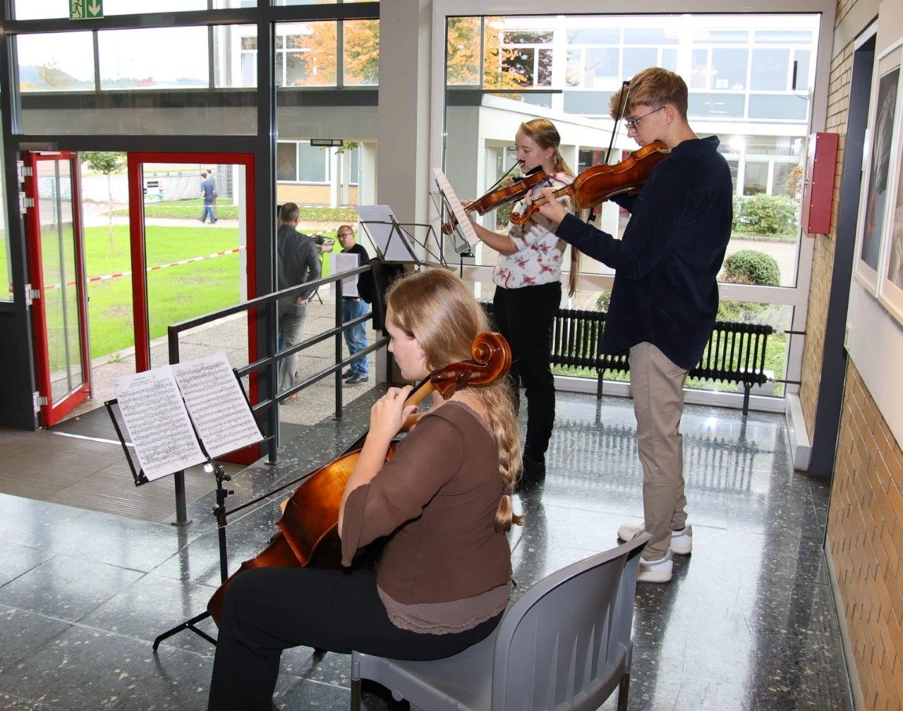 Wer ist die geheimnisvolle Frau auf den Fotografien von Juliane Wende, die in einem Schrank kauert, sich hinter einem Mantel versteckt oder schemenhaft durch ein Hotelzimmer huscht? Diese und viele andere kreative Arbeiten sind derzeit in der Schulgalerie der Heimschule Lender in Sasbach zu sehen, werfen beim Betrachten einige Fragen auf und dies ist ganz im Sinne der Künstlerin. „Ihre Bilder bieten Freiräume, diese als Bühne für die eigenen Gedanken und Geschichten zu nutzen, sich darauf einzulassen, sich fallen zulassen und sich darin zu verlieren“. Dies betonte Lucretia Schmidt von der Fachschaft Kunst bei der Vernissage im Rahmen der Altsasbachertage, die Arbeiten der Abiturientin von 1983  sind im Verwaltungsgebäude zu sehen. Für die feinen musikalischen Klangfarben sorgten Solveig Sonntag, Felia Conrad und Arthur Vygen, während sich Fachleiterin Svenja Bohnert bei der Künstlerin und den Altsasbachern bedankte.