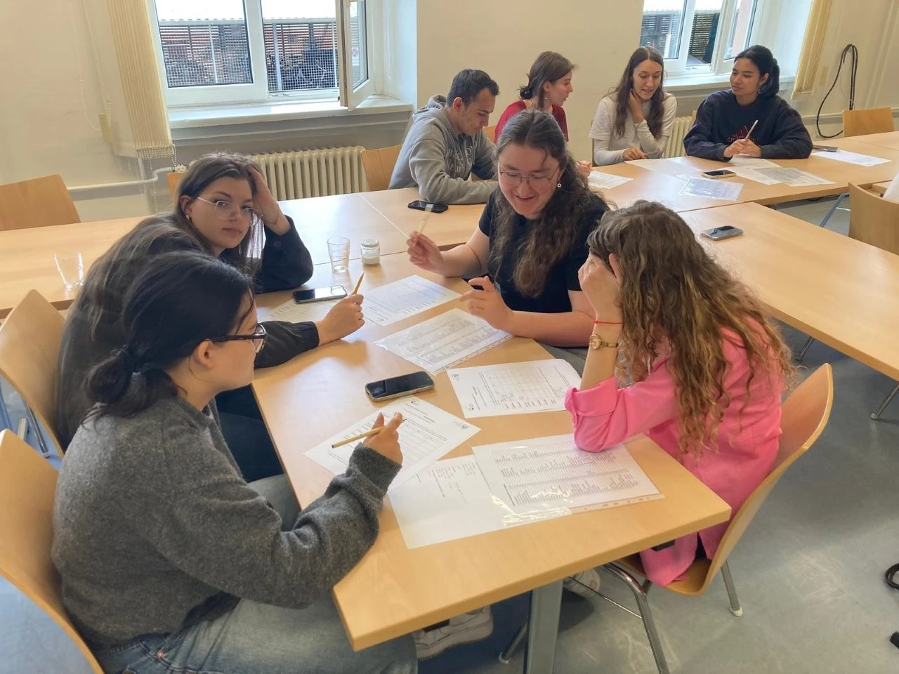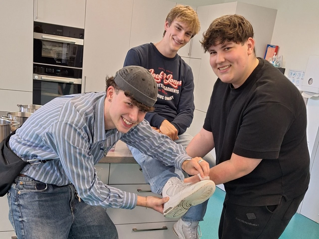 Im letzten Raum angekommen, dürfen die Schüler*innen sich in ein mögliches Leben als Student hineinversetzen. Großes Erschrecken geht durch die Gruppe, als diese feststellen muss, dass ein solches Dasein gar nicht so billig ist und einem womöglich gerade mal 90€ für Sonstiges übrig lässt. Schließlich kehrt wieder Heiterkeit ein: Viel gelacht wird, denn man darf seinen Wochenplan aufstellen: Was isst man denn jeden Tag so als Student, um möglichst gut über die Runden zu kommen? Resteessen, Nudeln, Mensa, Mensa und noch mehr Mensa. Und vielleicht als kleine Belohnung eine Fertigpizza. Auf den Heimweg geben die Workshop-Leiter noch einige Tipps zwecks mehr Nachhaltigkeit und Geldersparnis mit, Stichworte “Foodsharing” oder Apps wie “Toogoodtogood”. Auch wenn nur für kurze Zeit dürften sich einige Eltern über das neugewonnen Wissen freuen!