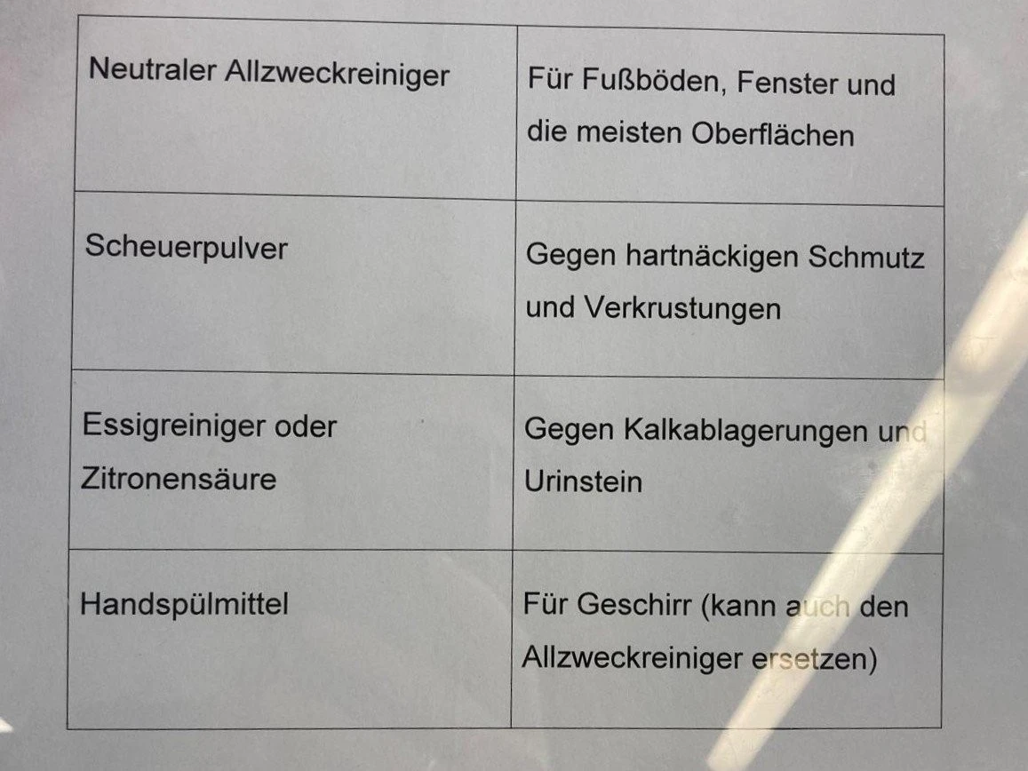 Weiter geht es in die Küche. Hier stehen lauter Reinigungsmittel auf dem Tisch, die man nur zum Teil von zu Hause kennt. Nicht lange wird die Gruppe verschont: In einem kleinen Wettkampf ohne Gewinner wird das Durchhaltevermögen beim Schrubben von stark verschmutzten Backblechen getestet. Diese werden von den einen mit Sodalösung und von den anderen mit Putzstein gereinigt. Sogar ein Produkt für die Toilettenreinigung wird am Ende hergestellt und gratis verteilt.